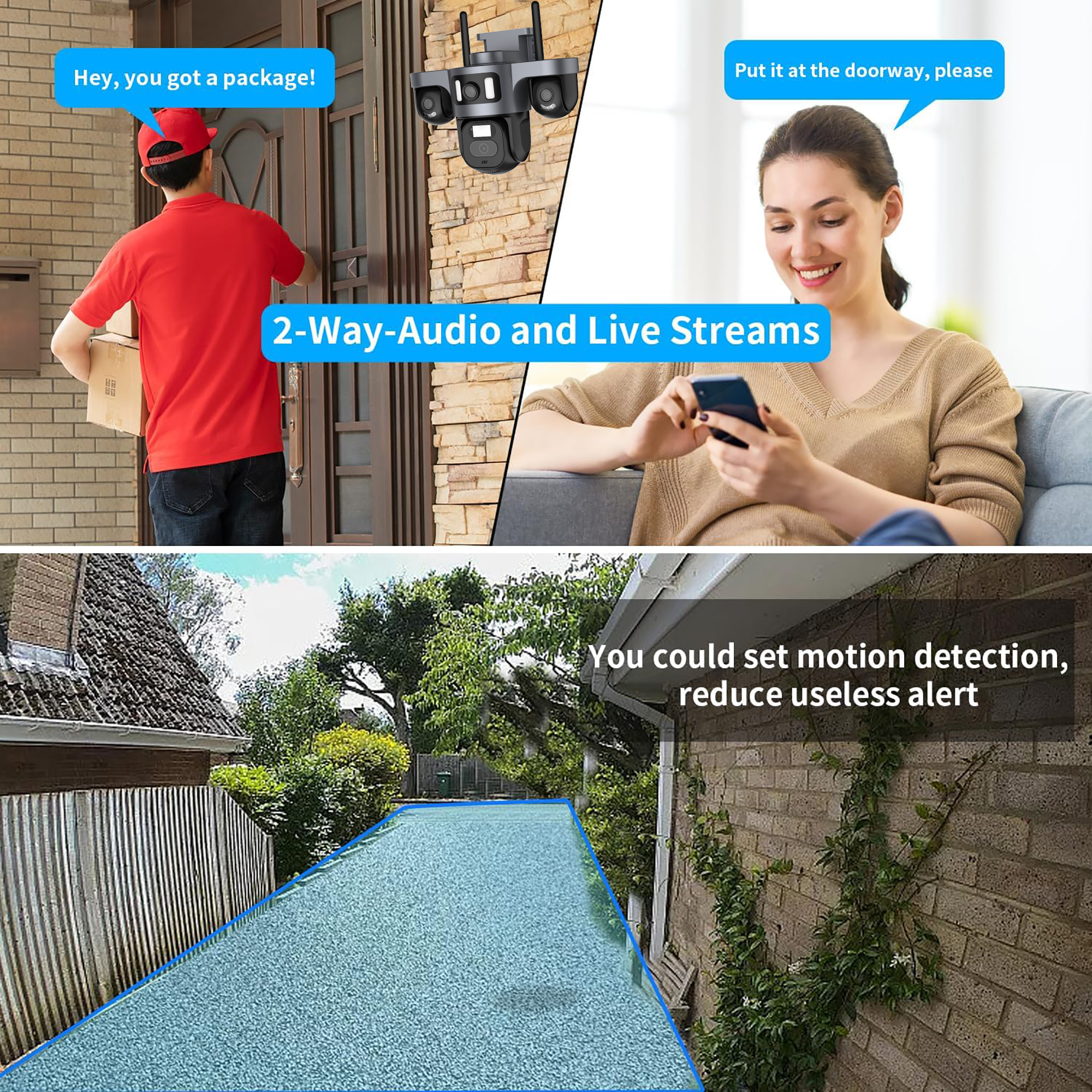 - Support voice monitoring, intercom, motion detection and alarm;